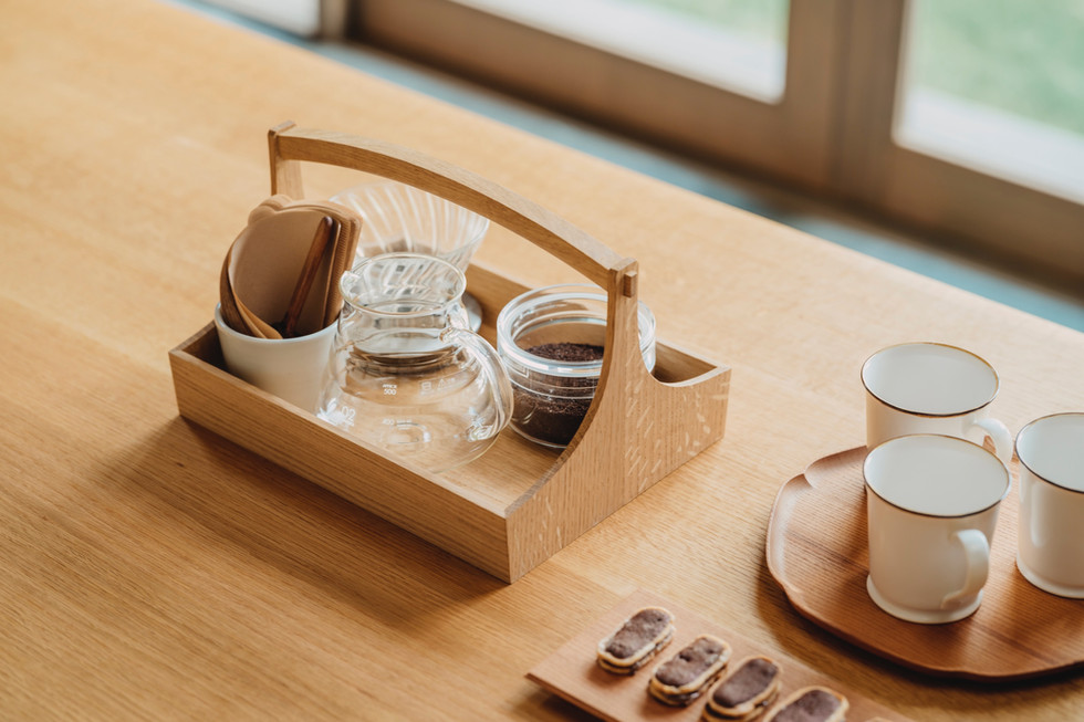 いつも使いたいものを引き出しや棚にしまわなくても、まとめて入れて手に取りやすい場所においておけます。例えば、お茶のセットやコーヒーセットなどをキッチンからダイニングへ持ち出したり、ソファーにおつまみとビールを持って行ったり、サンドイッチやおにぎりを入れてピクニックでお外に持ち出すこともできます。